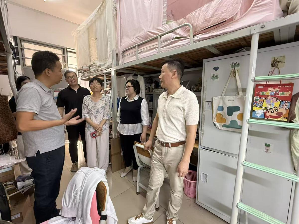 随后,大家走进学生宿舍,与同学们亲切交流,细致询问学业适应、学业规划、毕业设计、实习求职等情况,认真倾听宿舍设施、生活保障、社区服务等方面的意见建议。现场检查宿舍用电安全、消防设施与内务卫生,叮嘱同学们遵守宿舍管理规定,增强安全防范意识,保持良好作息与学习氛围,积极参与书院活动。同学们感谢学院领导的关心,特别感谢学校给学生宿舍更换了新空调。