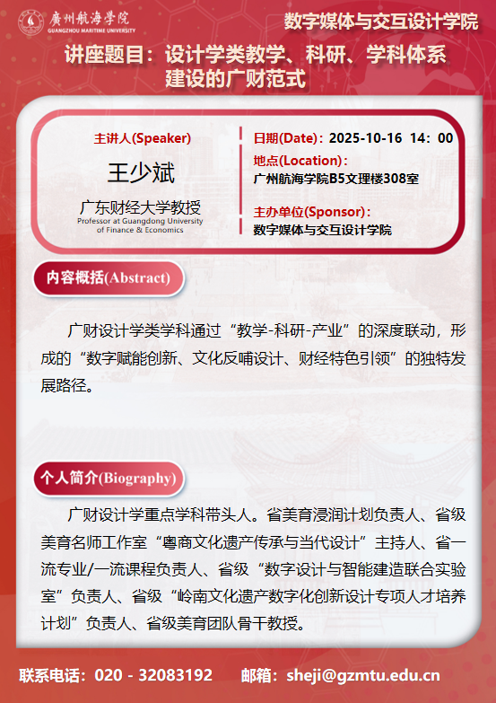学术讲座预告:王少斌《设计学类教学、科研、学科体系建设的广财范式》